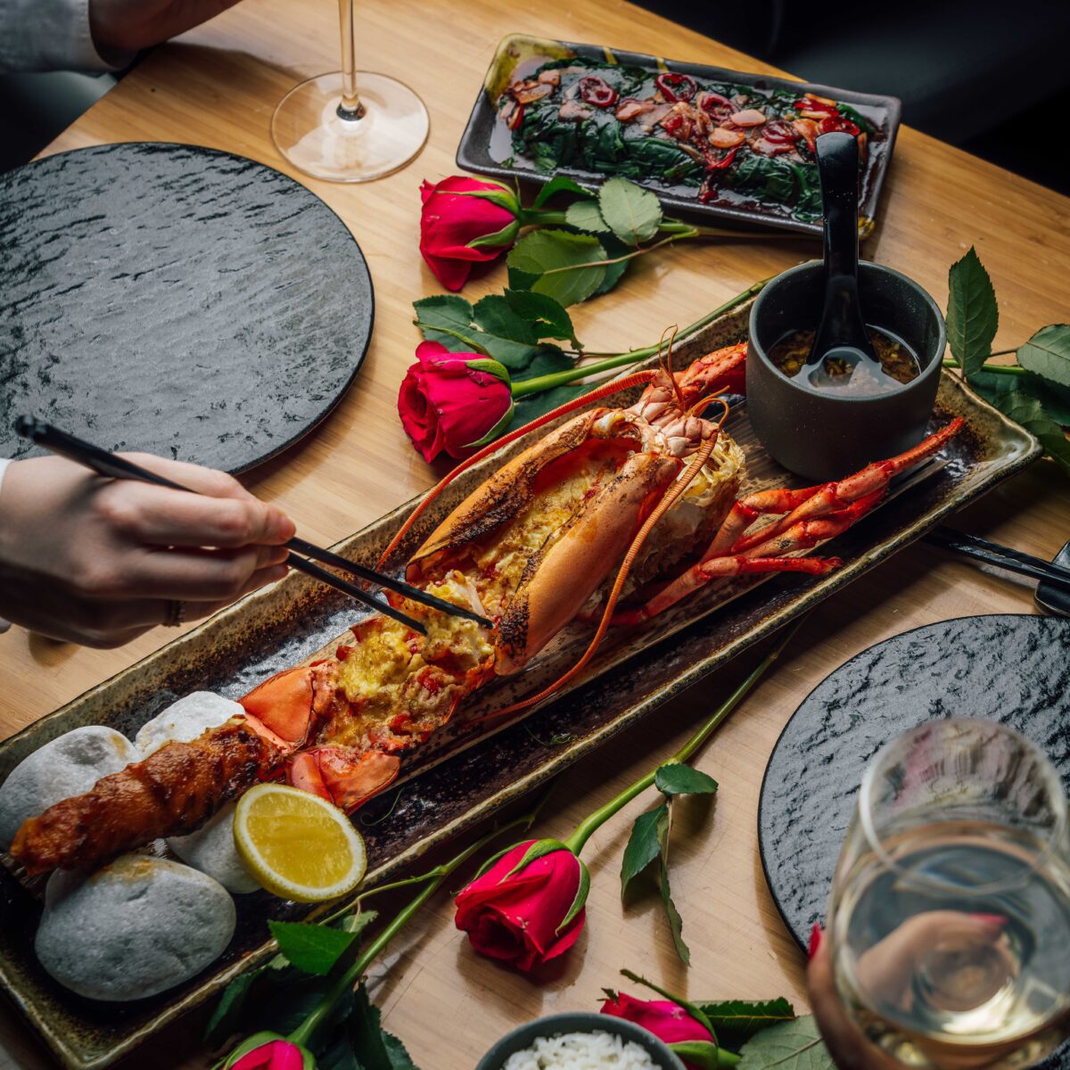 Indulge in a selection of Chino Latino signatures including a sushi platter to start featuring tenkasu rolls, salmon kimchi taquitos, tiger maki and more, followed by a selection of small dishes including Ibérico secreto skewers with a red pepper ajÍ panca dressing. For mains, enjoy the gratinated lobster and king crab, and for dessert, enjoy raspberry ‘Heart Beets’.